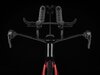 Einen ultraleichten Rahmen aus 800 Series OCLV Carbon, windschnittige Rohre mit Kammtail Virtual Foil-Profil (KVF), eine Speed Concept-Carbongabel mit aerodynamischem Profil, straßenglättendes IsoSpeed, integrierte Aufbewahrungslösungen für Verpflegung, Flüssigkeit und ein Pannenkit, einen drahtlosen elektronischen SRAM RED AXS 12fach-Antrieb mit SRAM AXS Blips-Schalthebeln, einen SRAM RED AXS-Powermeter, einen vollständig integrierten Lenker samt Vorbau, einen triathlonspezifischen Bontrager Hilo Pro-Carbonsattel für eine aggressive Aero-Sitzposition, zuverlässig zupackende Scheibenbremsen und aerodynamische Bontrager Aeolus RS