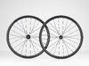 - 35 mm hohe Felge aus OCLV Carbon (27 mm Außenweite, 19,5 mm Innenweite), 24/24 Grand Strada-Speichen und Sechskant-Aluspeichennippel